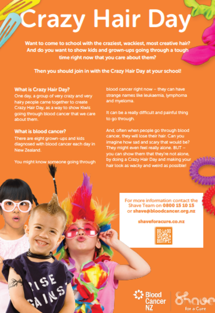 Whether it’s hair that stands up, out, or sideways, your school will raise important funds to support Kiwis going through blood cancer.